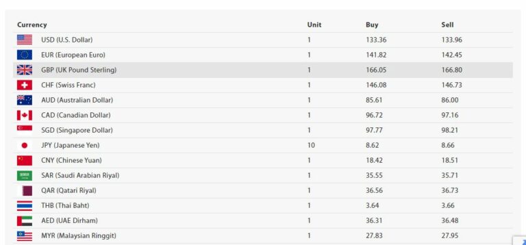 काठमाडौं । नेपाल राष्ट्र बैंकले आज (बुधबार) का लागि विदेशी मुद्राको विनिमयदर तोकेको छ । जसअनुसार आज अमेरिकी डलर एकको खरिद दर १३३ रुपैयाँ ३६ पैसा र बिक्री दर १३३ रुपैयाँ ९६ पैसका दरले कारोबार भइरहेको छ ।