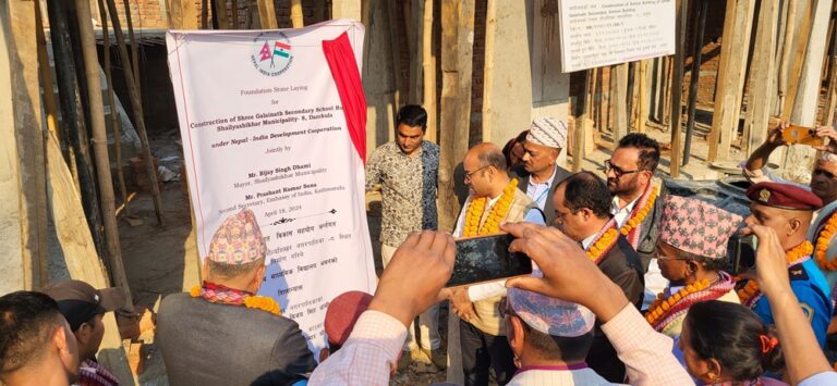 मेयर बिजय सिंह धामी र भारतीय राजदूतावास, काठमाडौंका द्वितीय सचिव प्रशान्त कुमार सोनाले उक्त भवनको शिलन्यास गरेका हुन् । कार्यक्रममा राजनीतिक प्रतिनिधि, सरकारी अधिकारी, समाजसेवी, विद्यालय व्यवस्थापनका प्रतिनिधि, शिक्षक÷शिक्षिका, अभिभावक तथा विद्यार्थीहरुको पनि उपस्थिति रहेको थियो । सो अवसरमा मेयर धामीले प्राथमिकताका क्षेत्रमा नेपाली जनताको उन्नतिका लागि भारत सरकारले पुर्याउदै आएको निरन्तर विकास सहयोगको प्रशंसा गरे ।