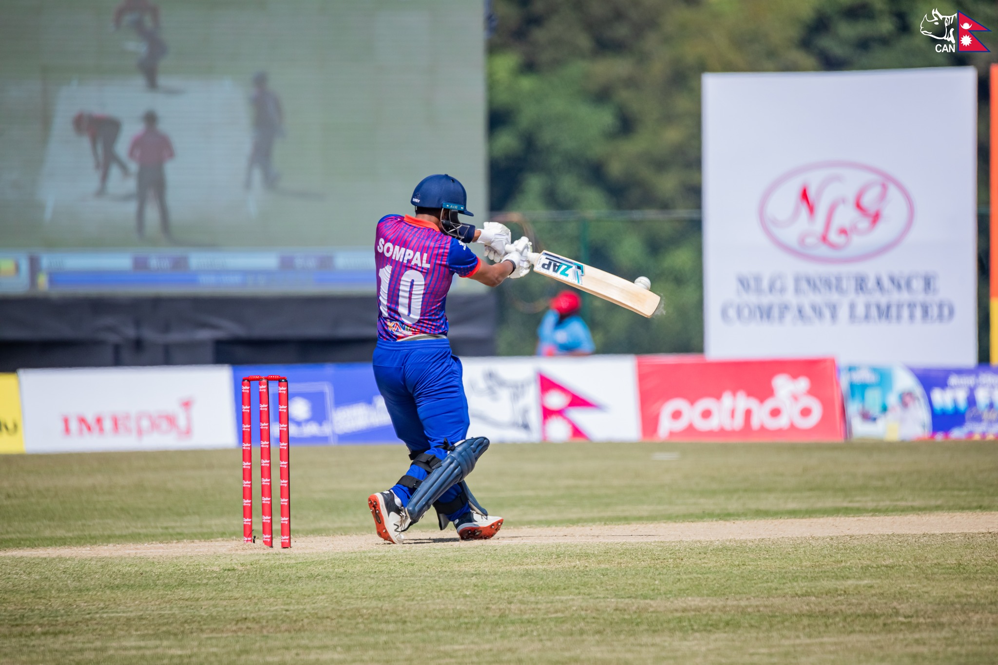 ओमानको मस्कटमा रहेको अल अमरेत क्रिकेट मैदान १ मा टस हारेर पहिला ब्याटिङको निम्तो पाएको नेपालले यसअघि कुशल भुर्तेल र आशिफ शेख र कप्तान रोहित पौडेल, कुशल मल्ल र दिपेन्द्र सिंह एैरी र सन्दिीप जोरालाई गुमाएको थियो ।