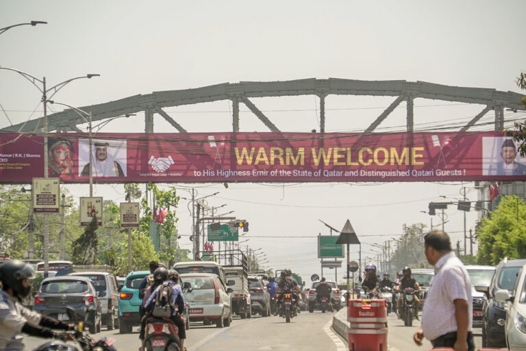 काठमाडौं । लोकतन्त्र दिवस अर्थात बैशाख ११ (आज) पहिलो पटक नेपाल भ्रमणमा आउन लागेका कतारका अमिर शेख तमिम बिन हमाद अल थानी (कतारी राजा) को स्वागतमा वानेश्वर र माइतीघर क्षेत्रमा तयार गरिएका स्वागतद्धार ।