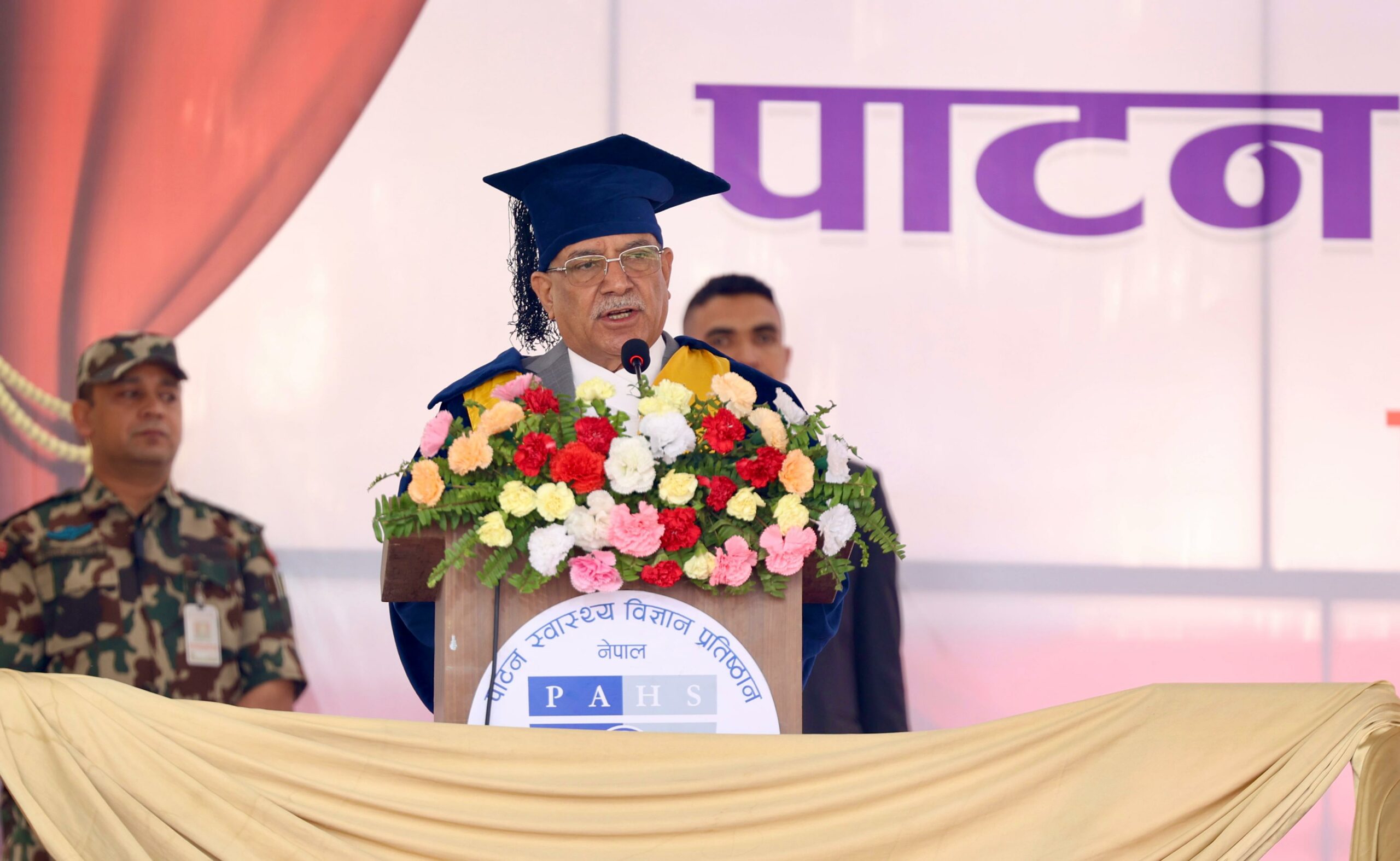 पाटन स्वास्थ्य विज्ञान प्रतिष्ठानको प्रथम दीक्षान्त समारोहलाई बुधबार बिहान सम्बोधन गर्दै प्रधानमन्त्री दाहालले भने, ‘स्वास्थ्य क्षेत्रमा आउन सक्ने जस्तोसुकै चुनौतीको सामना र व्यवस्थापनका लागि प्रतिष्ठानले थप पूर्वाधारहरूको विकास गर्नुपर्छ ।’