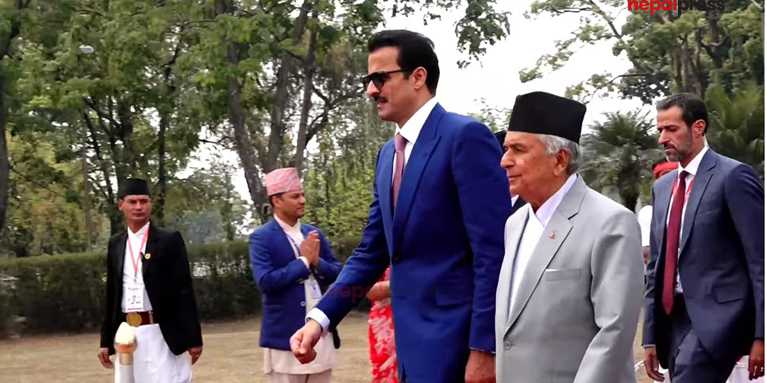 काठमाडौं । दुई दिने राजकीय भ्रमण सकेर कतारका अमिर शेख तमिम विन हमाद अल थानी स्वदेश फर्किएका छन् । दुई दिने राजकीय भ्रमणका लागि हिजो दिउँसो काठमाडौं उत्रिएका थानी आज बुधबार स्वदेश फर्किएका हुन् ।