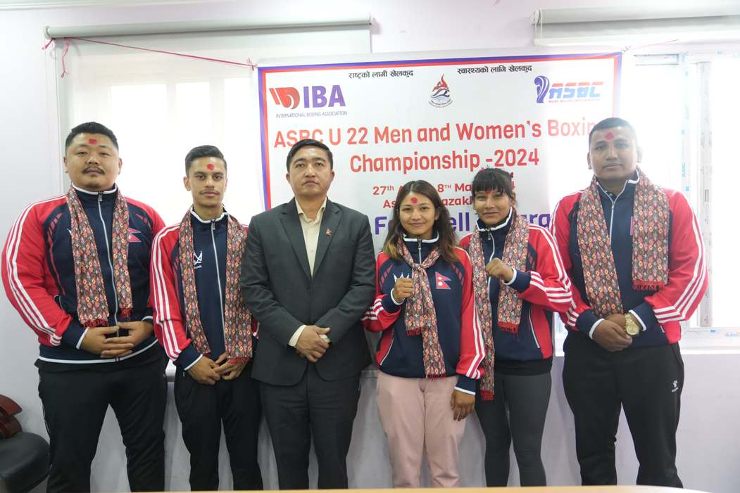 प्रशिक्षकमा आइबा वान स्टार सुजित पुन मगर तथा निर्णायकमा आइबा २ स्टार आरजे धनकुमार मैनाली छन् । टोलीलाई राष्ट्रिय खेलकुद परिषद्का सदस्य–सचिव टंकलाल घिसिङ, नेपाल बक्सिङ महासंघका अध्यक्ष राम अवालेलगायतले बुधबार एक कार्यक्रमबीच बिदाइ गरे ।