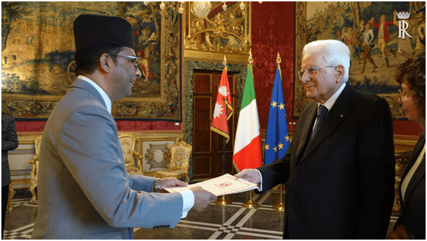 काठमाडौं । इटालीका लागि नेपालका गैरआवासीय राजदूत रामप्रसाद सुवेदीले त्यहाँका राष्ट्रपति सेर्गियो माटारेलासमक्ष आफ्नो ओहोदाको प्रमाणपत्र प्रस्तुत गरेका छन् ।