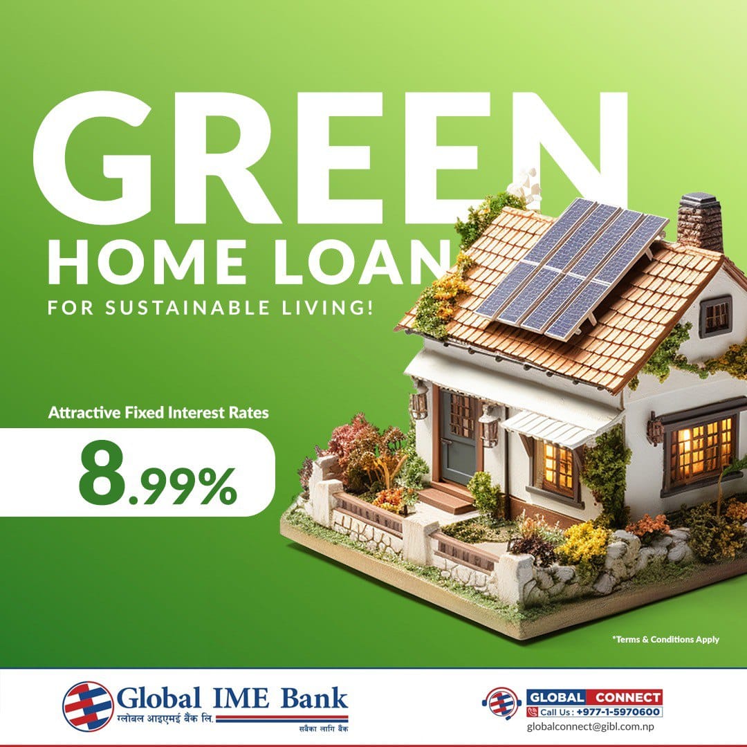 ग्लोबल आइएमई बैंकको ग्लोबल ग्रीन आवास कर्जा, ८.९९ प्रतिशत स्थिर ब्याजदर