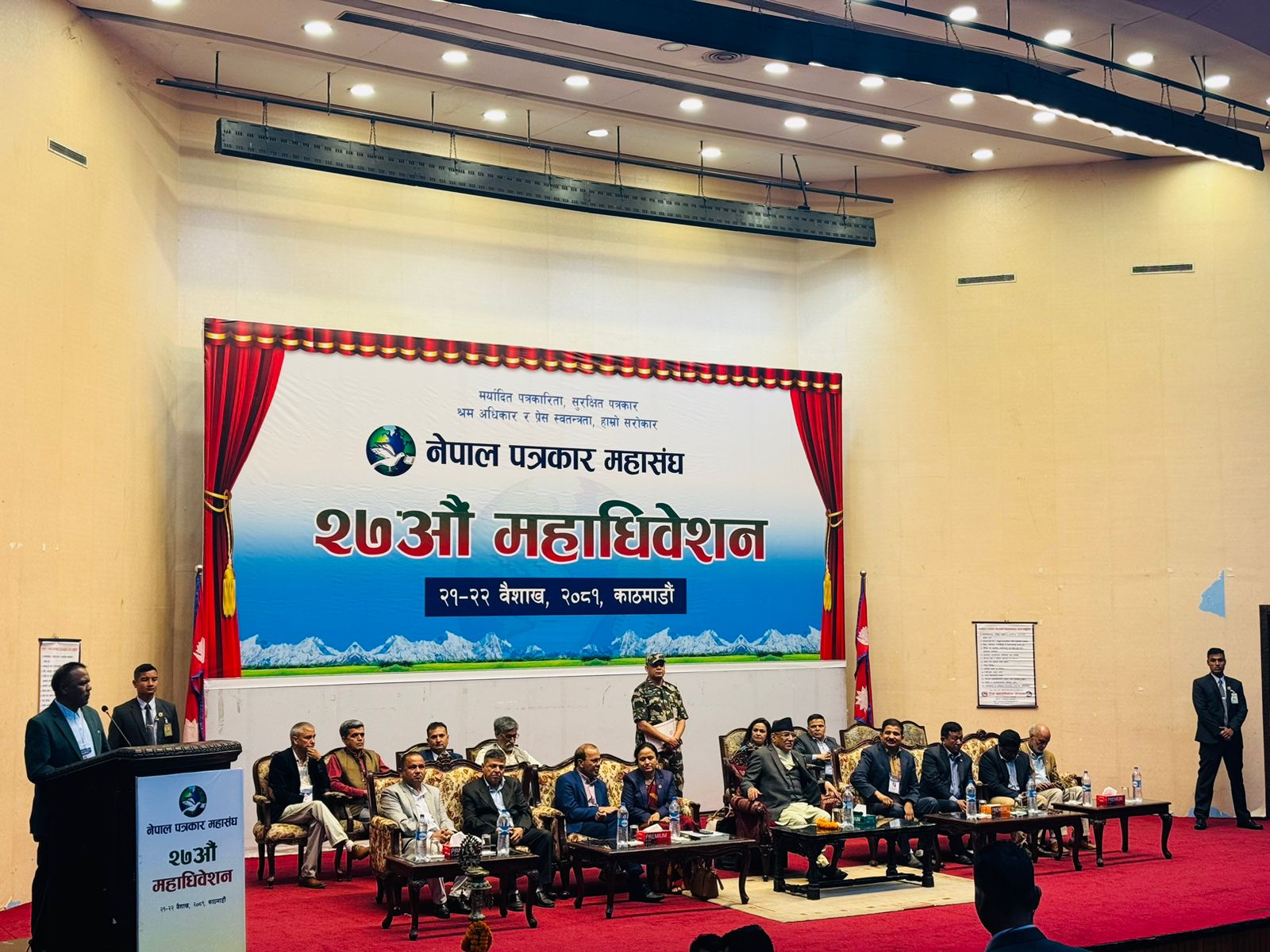 राष्ट्रिय सभागृहमा शुक्रबार महासंघको महाधिवेशन भइरहेको छ । महाधिवेशन अघि पत्रकारहरुले शान्तिवाटिकाबाट राष्ट्रिय सभागृहसम्म प्रभातफेरी समेत निकालेका थिए ।