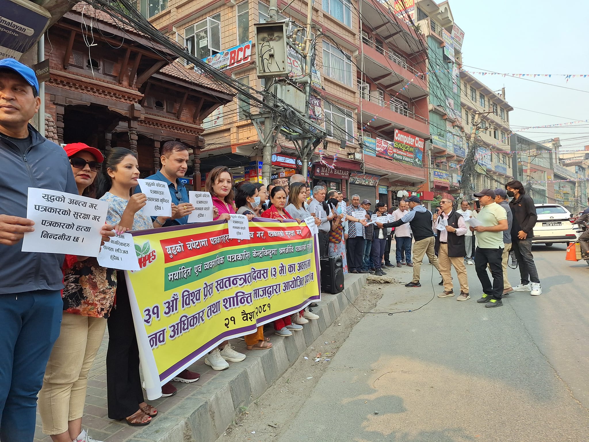 ३१ औँ विश्व प्रेस स्वतन्त्रता दिवसका अवसरमा मानव अधिकार तथा शान्ति समाजद्वारा अघि सारिएको अवधारणापत्रमा युद्धको चपेटामा सय भन्दा बढी पत्रकारहरुको हत्याको निन्दा गर्दै जस्तोसुकै अवस्थामा पनि पत्रकारहरुको सुरक्षा हुनुपर्नेमा जोड दिइएको छ ।