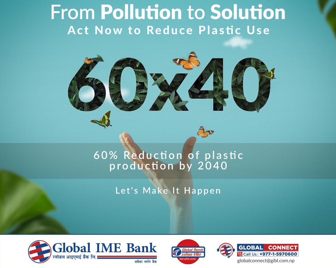 काठमाडौं । ग्लोबल बैंक लिमिटेडले ‘प्ल्यानेट भर्सेस प्लास्टिक’ (प्लास्टिक विरुद्ध पृथ्वी) अभियानमा ऐक्यबद्धता जनाउँदै बैंकभित्र प्लाष्टिकको खपत घटाउँदै वातावरणमैत्री दिगो अभ्यासहरूको अनुशरण गर्ने भएको छ ।
