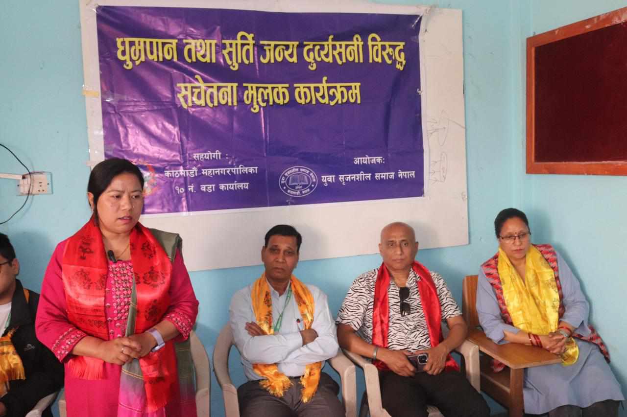 अध्यक्ष लामाले सुर्तीको लत सानै उमेरदेखि लाग्न सक्ने भएकाले विद्यार्थीहरु यसबाट टाढा रहनुपर्ने दृष्टान्त पेश गरिन् । उनले सुर्तीले आर्थिक, सामाजिक, वातावरणीय क्षय हुने मात्र नभइ भविष्यका कर्णधारहरुको जीवन नै खतरामा पार्ने भएकाले कसैंले भन्दैमा उक्साउँदैमा सुर्ती सेवन त के खरिदसम्म पनि गर्न नहुने स्पष्ट पारिन् ।