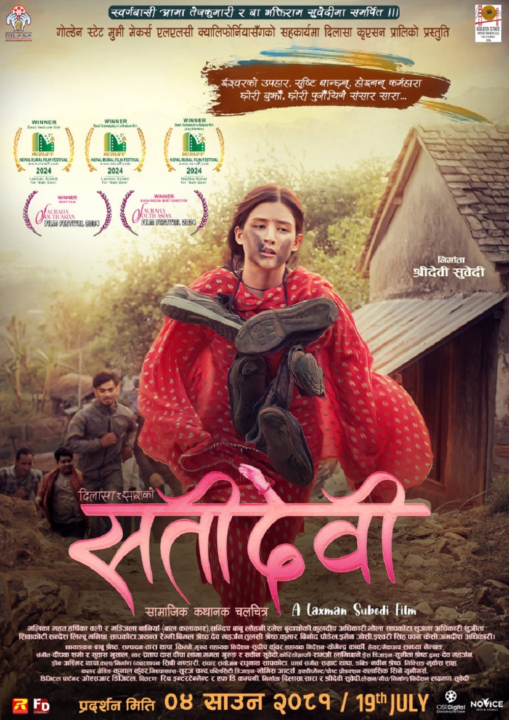 काठमाडौं । लेखक तथा निर्देशक लक्ष्मण सुवेदीको फिल्म ‘सतीदेवी’ आगामी साउन ४ गते रिलिज हुने भएको छ । नारी प्रधान फिल्मले बाबु र छोरीहरु बीचको मिहीन स्नेह, सम्बन्धको आरोह अवरोहलाई प्रस्तुत गरेको छ ।