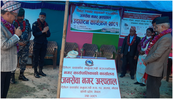 निकट भविष्यमा १५ शय्यामा स्तरोन्नति गर्नेगरी स्थापना गरिएको नगर अस्पतालको उद्घाटन पूर्वसांसद टङ्क राई, दिक्तेल रुपाकोट मझुवागढी नगरपालिकाका प्रमुख तीर्थराज भट्टराई र प्रमुख जिल्ला अधिकारी शिवकुमार कार्कीले संयुक्तरूपमा सेवा प्रारम्भ गरका हुन्।
