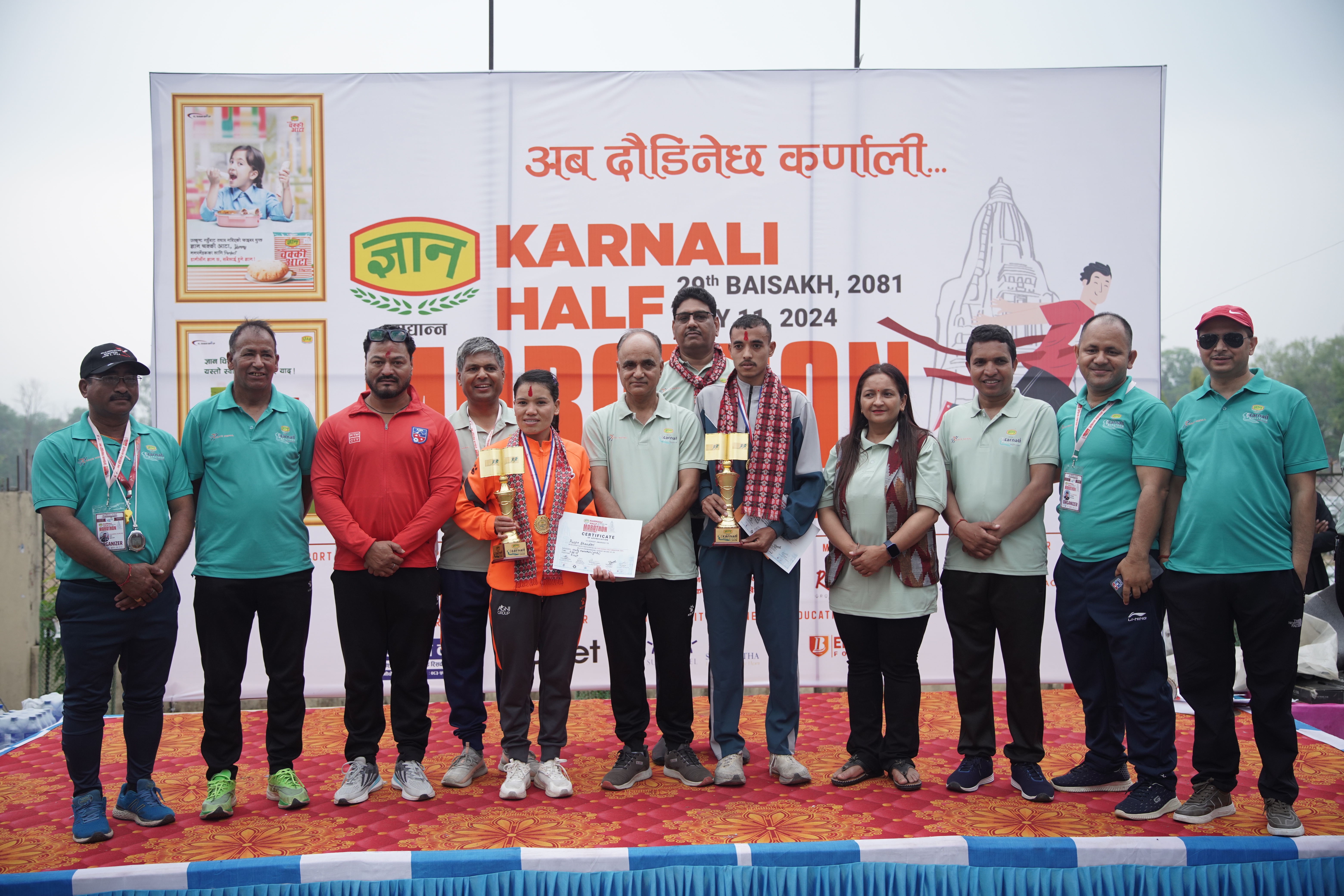 बरिष्ठ वाद्यवाधक प्रेमदेव गिरीको मादलको तालमा मुख्यमन्त्रीले झ्याली बजाएर प्रथम कर्णाली हाफ म्याराथन उदघाटन गरिएको थियो । कर्णाली प्रदेश खेलकुद विकास परिषदको आर्थिक सहयोग, रेस नेपालको आयोजना एवं क्रियटिभ गन्ज मिडिया एण्ड इभेन्ट म्यानेजमेन्टको व्यवस्थापनमा कर्णाली हाफ म्याराथनमा केएल दुगड ग्रुपको ज्ञान खाद्यान्न टाइटल स्पोन्सर रहेको छ भने वीरेन्द्रनगर नगरपालिका मुख्य साझेदार रहेको छ ।
