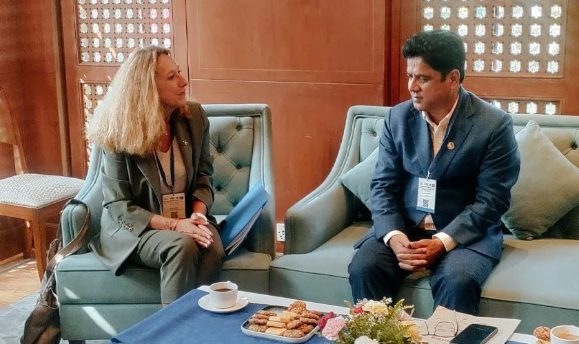 काठमाडौं । उद्योग, वाणिज्य तथा आपूर्तिमन्त्री दामोदर भण्डारी र युरोपियन कमिसनका उपनिर्देशक मिरियाम फेरानसँग आज विविध विषयमा कुराकानी भएको छ । काठमाडौंको सोल्टी होटलमा भएको भेटमा मन्त्री भण्डारीले नेपालको आर्थिक–सामाजिक विकासका लागि युरोपियन युनियनले प्रदान गर्दै आएको निरन्तर सहयोग र सहायताको उच्च प्रशंसा गरे ।