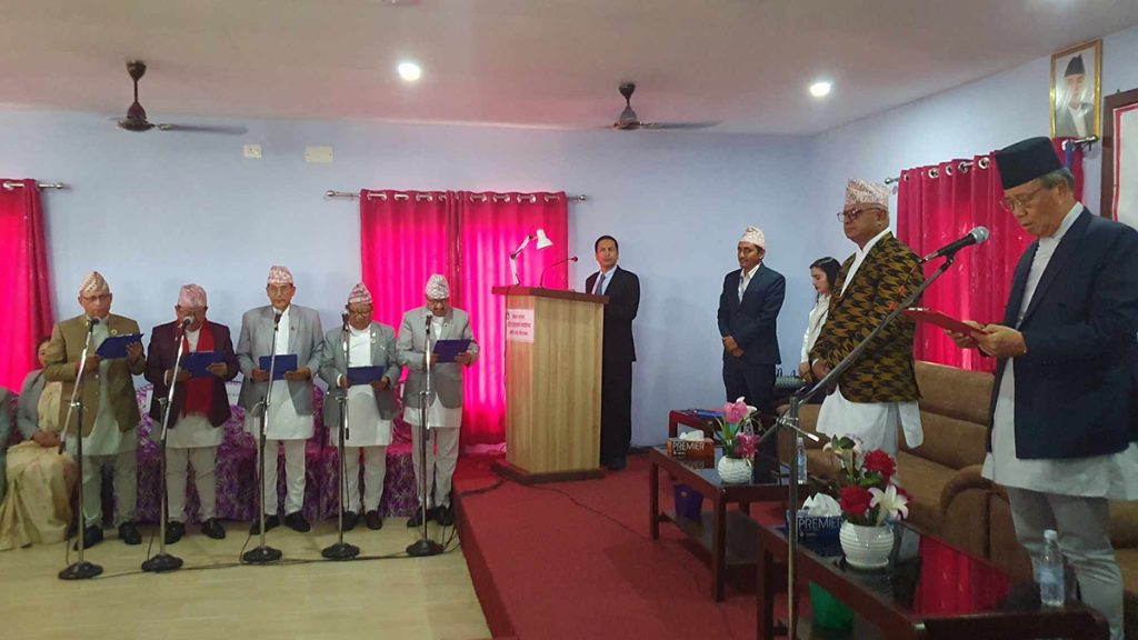 आज पाँच मन्त्री र दुई राज्यमन्त्रीहरुलाई प्रदेश प्रमुख प्रशुराम खापुङले पद तथा गोपनीयताको शपथ खुवाएका हुन् ।