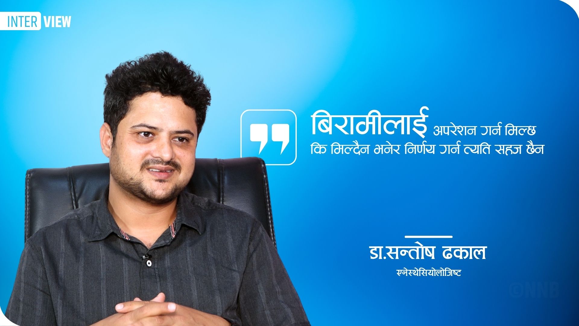 काठमाडौं । डा. सन्तोष ढकाल मणिपाल अस्पताल पोखरामा कार्यरत छन् । अस्पतालमा एनेस्थेसियोलोजिष्टका रुपमा १३ वर्षदेखि कार्यरत डा.ढकालको भूमिका तुलनात्मक रुपमा अलिक भिन्न छ । अपरेसन गर्नुपर्ने बिरामीलाई असहज/दुखाई महशुस नहोस र सँगै डाक्टरलाई पनि शल्यक्रियाका लागि उचित वातावरण मिलोस् भन्न हेतु प्रारम्भमा बेहोस बनाउनेदेखि अपरेसनपछि पनि नियमित रेखदेखको भूमिका एनेस्थेसियोलोजिष्टको हुन्छ । यसै सिलसिलामा डा.ढकालसँग गरीएको संक्षिप्त कुराकानी।