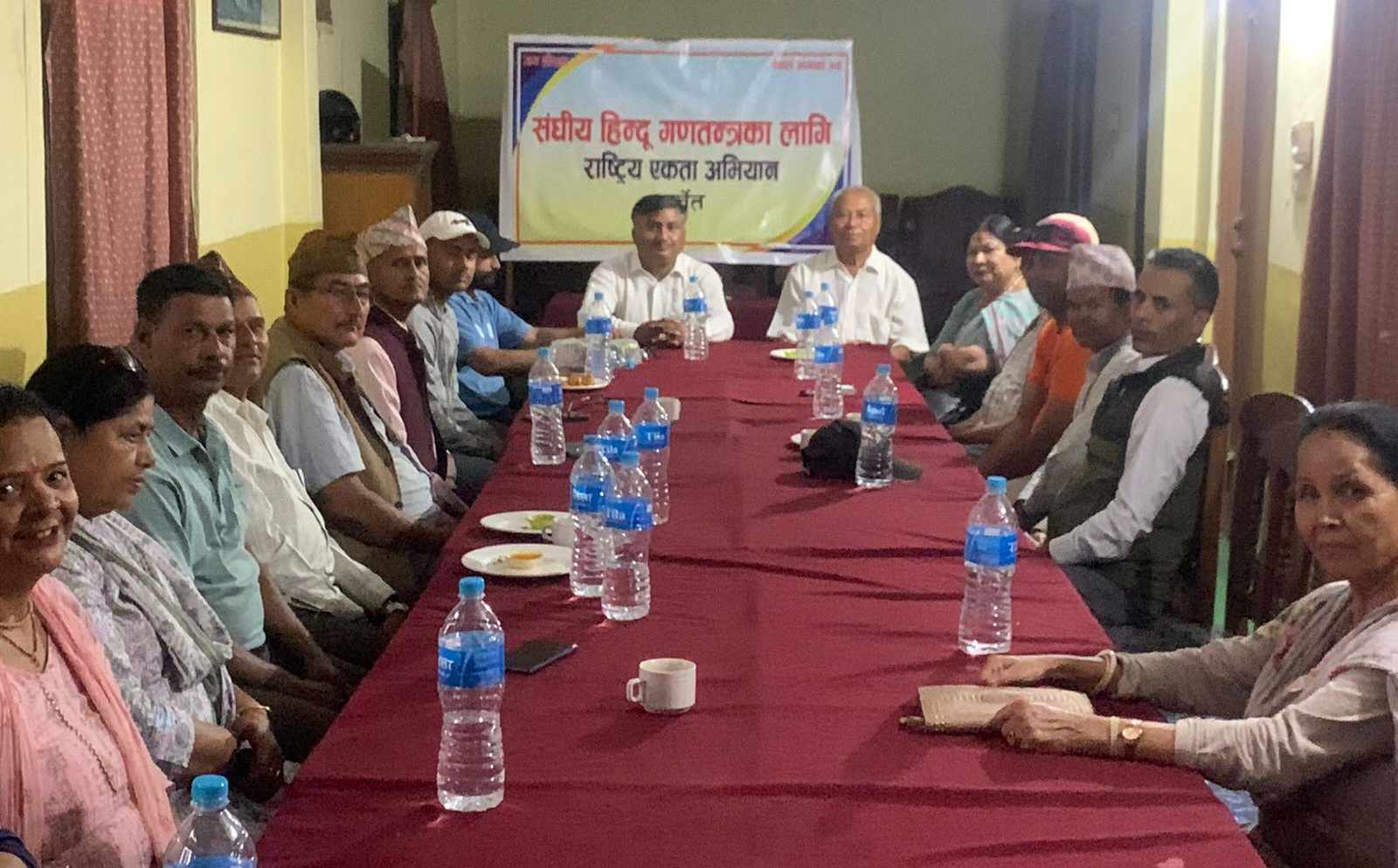 कार्यक्रमको सभापतित्व गरि रहेका समाजसेवी काली प्रसाद शाक्यले अभियानले संघीय हिन्दू गणतन्त्रको नयाँ अवधारणा ल्याएकामा अब एक जुट भई अगाडि बढ्नु को विकल्प नरहेको बताए । ‘विगतमा हिन्दू धर्मलाई राजतन्त्रसँग जोडेर हेर्ने गरिएको थियो। त्यसकारण पहिचानवादीहरु हिन्दूराष्ट्रको बिरोध गर्ने गरेको पाइँछ तर अभियानको संघिय हिन्दू गणतंत्रको अवधारणाले सबलाई समेटेको छ। कार्यक्रम संचालन हिन्दूवादी योद्धा ललित भटराईले गरेका थिए ।