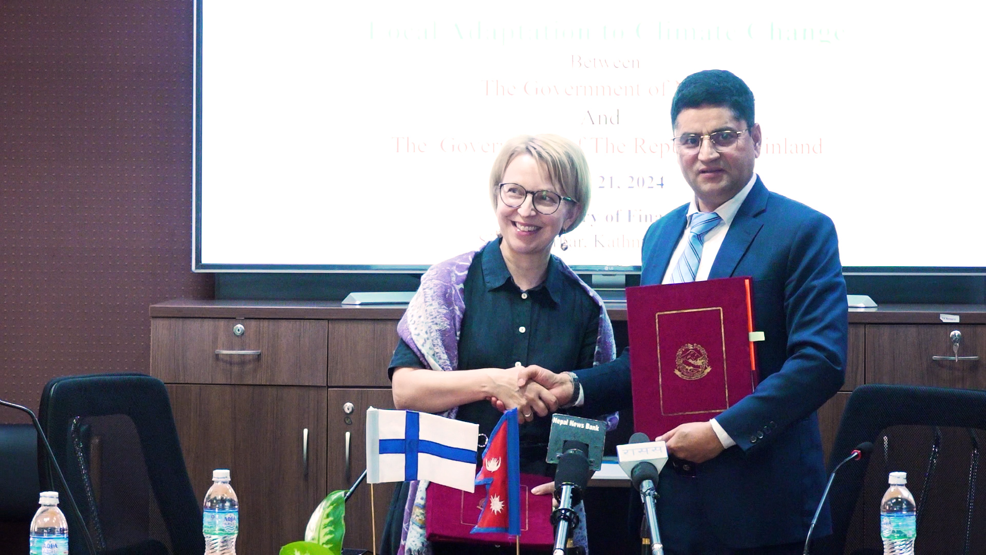 सम्झौतामा नेपाल सरकारका तर्फबाट अर्थ मन्त्रालयका सहसचिव श्रीकृष्ण नेपाल र फिनल्याण्ड सरकार तर्फबाट नेपालका लागि फिनल्याण्डकी राजदूत रिना रिक्काले हस्ताक्ष गरेकी हुन् ।