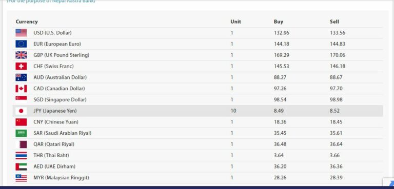 काठमाडौं । नेपाल राष्ट्र बैंकले आजका लागि विदेशी मुद्राको विनिमयदर तोकेको छ ।