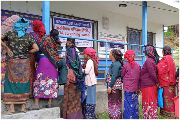 महिलामा हुने पाठेघरको मुखमा हुने क्यान्सरको जोखिम पहिचान गर्न भिआइए (एसिड राखेर भाइरसको कोषिका हेर्ने विधि) परीक्षण तथा निःशुल्क स्वास्थ्योपचार शिविर आउोजना गरिएको हो ।