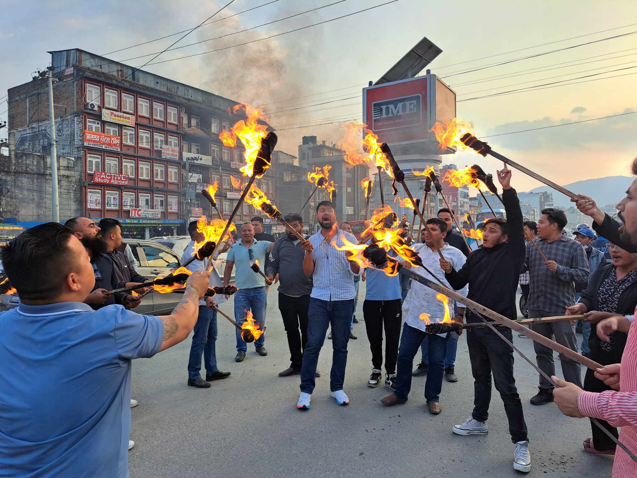 भष्ट्रचार र सहकारि ठगिको छानविनको माग गर्दै काठमाडौंमा तरुण दलको मसाल जुलुस