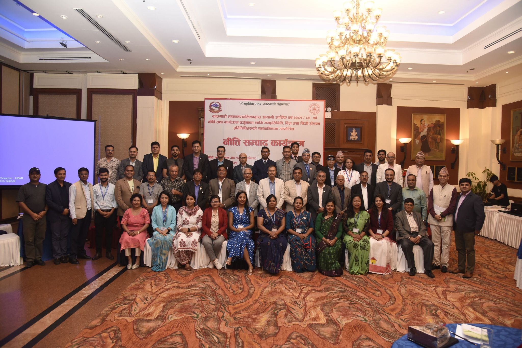 शनिबार ‘नीति संवाद’ कार्यक्रम आयोजना गर्दै विषयगत विज्ञबाट प्रस्तुतिकरण, सामुहिक एवं अन्तरक्रियात्मक छलफलबाट पृष्ठपोषण लिएको हो ।