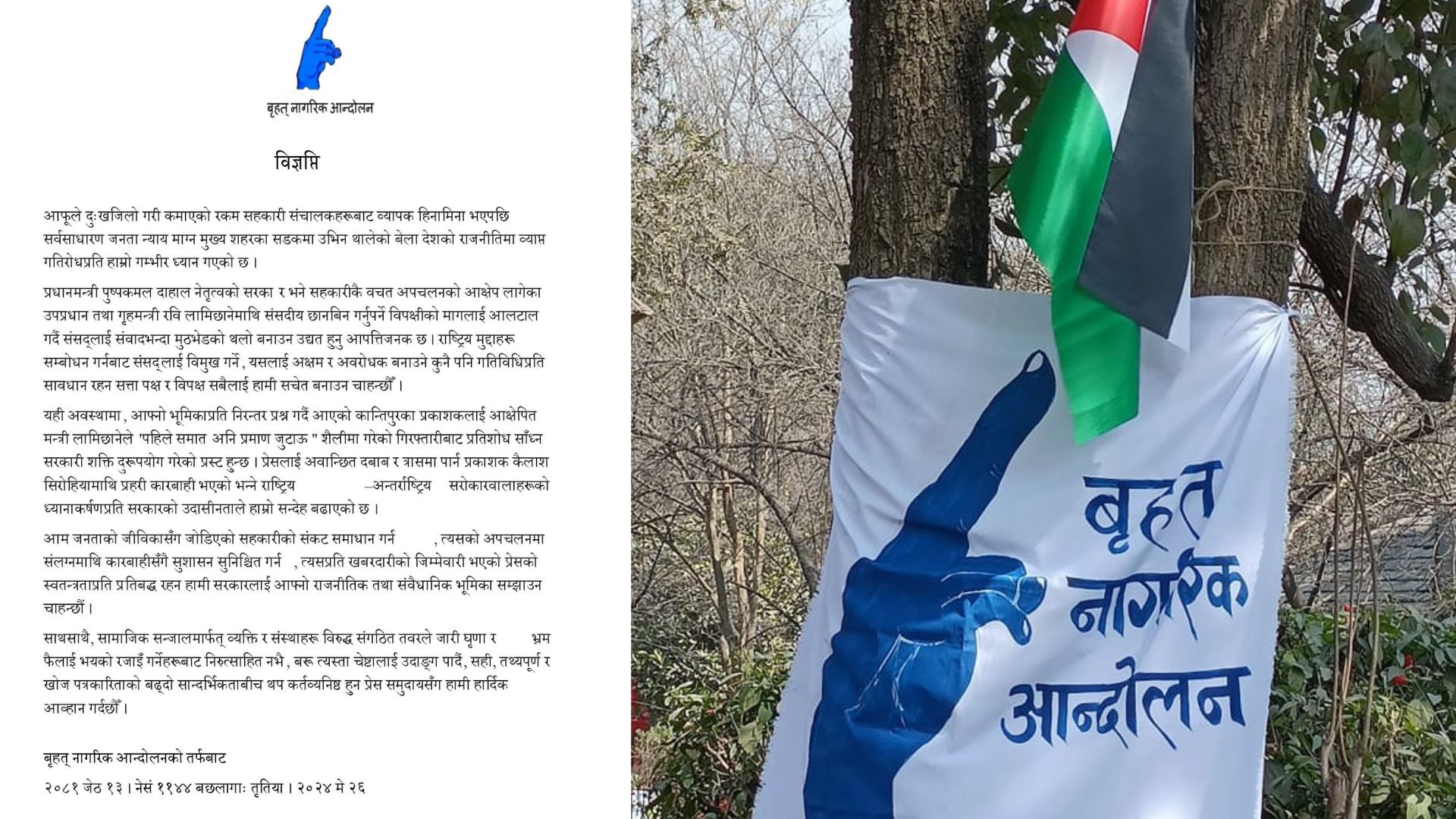 ‘आम जनताको जीविकासँग जोडिएको सहकारीको संकट समाधान गर्न, त्यसको अपचलनमा संलग्नमाथि कारबाहीसँगै सुशासन सुनिश्चित गर्न, त्यसप्रति खबरदारीको जिम्मेवारी भएको प्रेसको स्वतन्त्रताप्रति प्रतिबद्ध रहन हामी सरकारलाई आफ्नो राजनीतिक तथा संवैधानिक भूमिका सम्झाउन चाहन्छौं,’ आन्दोलनले विज्ञप्ति जारी गर्दै भनेको छ ।