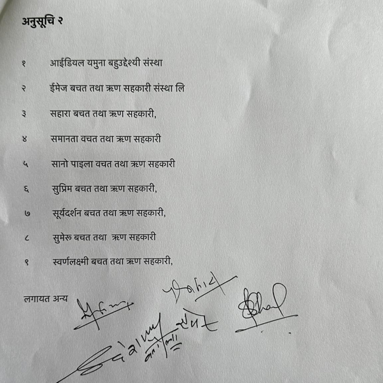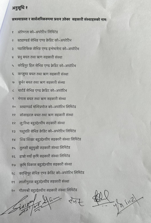 काठमाडौं । आज मंगलबार दिउँसो बसेको कार्यदल बैठकले सहकारीको रकम अपचलनबारे छानबिन गर्ने संसदीय समितिको ४ बुँदे कार्यादेश (टीओआर) टुंगो लगाएको छ । उक्त टीओआर प्रधानमन्त्री पुष्पकमल दाहाल ‘प्रचण्ड’लाई बुझाइएको छ ।