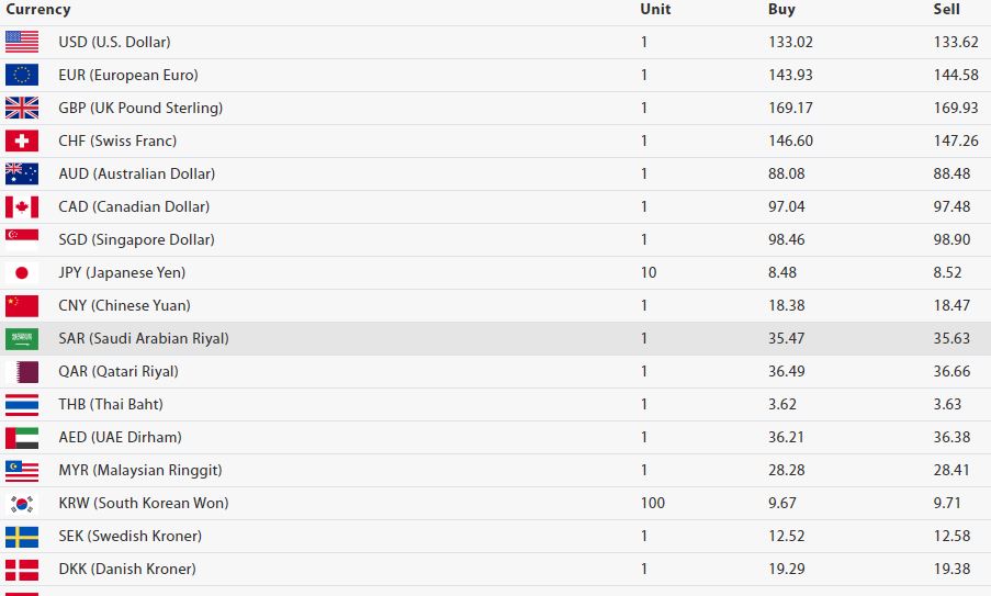 राष्ट्र बैंकका अनुसार आज अमेरिकी डलर एकको खरिद दर १३३ रुपैयाँ २ पैसा रहेको छ भने बिक्री दर १३३ रुपैयाँ ६२ पैसा रहेको छ ।