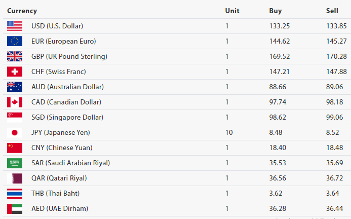 राष्ट्र बैंकका अनुसार आज अमेरिकी डलर एकको खरिद दर १३३ रुपैयाँ २५ पैसा र बिक्री दर १३३ रुपैयाँ ८५ पैसा पुगेको छ ।