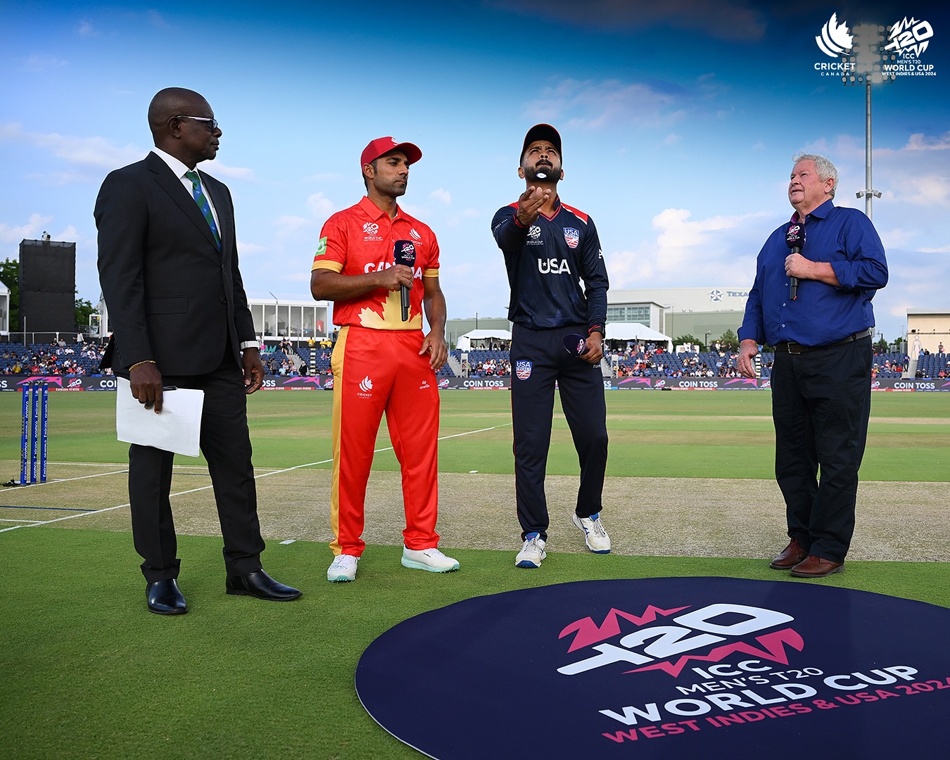 डालासको ग्रान्डपेरी क्रिकेट स्टेडियममा भएको खेलमा टस हारेर पहिला ब्याटिङ गरेको क्यानडाले निर्धारित ओभरमा ५ विकेट गुमाएर १९४ रन बनाएको थियो । क्यानडाले सुरुआत उत्कृष्ट गरेको थियो । पहिलो विकेटका लागि आरोन जोनसन र नभनित धलिवालले ४३ रनको साझेदारी गरेका थिए । पहिलो विकेटको रुपमा जोनसन १६ बलमा २३ रन बनाएर आउट भए । उनले पाँच चौका प्रहार गरे ।