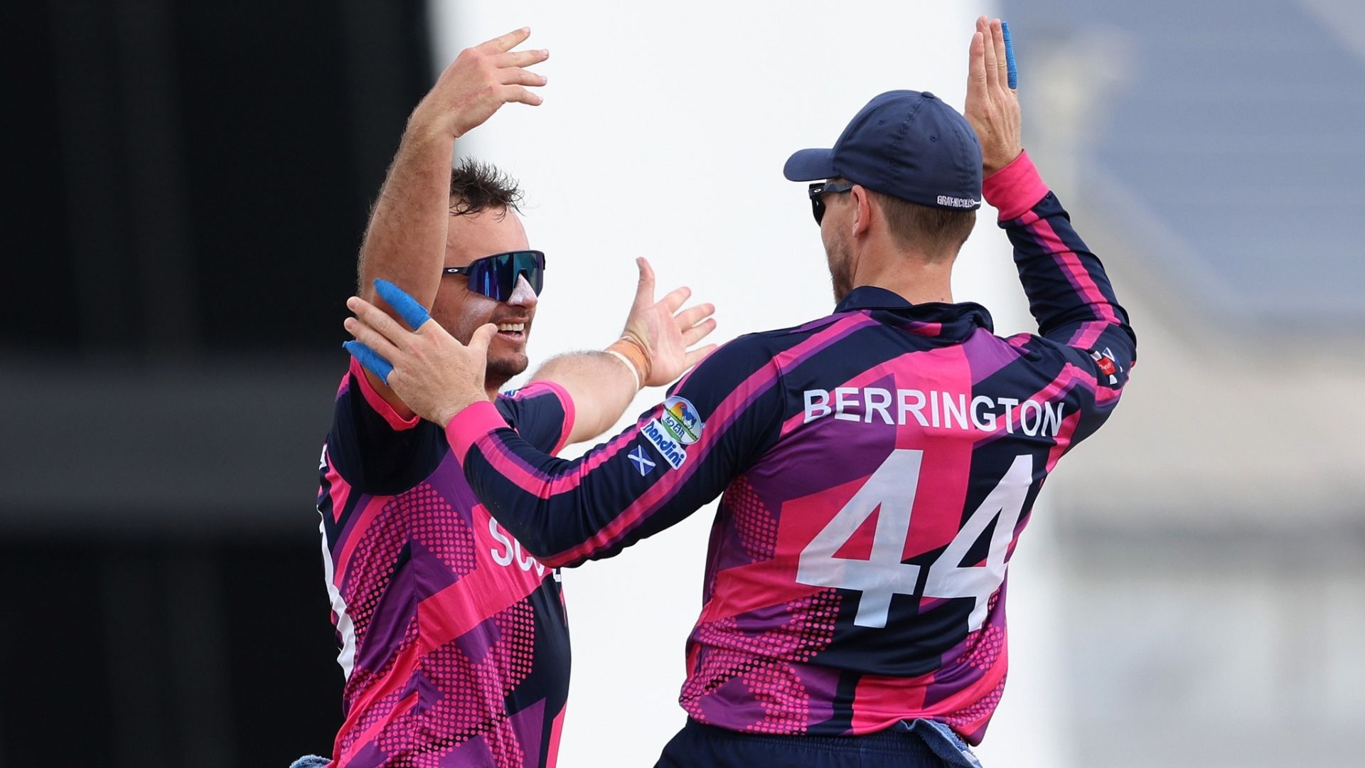 जवाफमा स्कटल्याण्डका जर्ज मुन्से ७ रन बनाएर आउट भएका थिए । उनले १५ बल फेस गेका थिए । मिचेल जोन्सले २० बलमा २६ रन बनाएर पभेलियन दोस्रो विकेटको रुपमा फर्किए ।