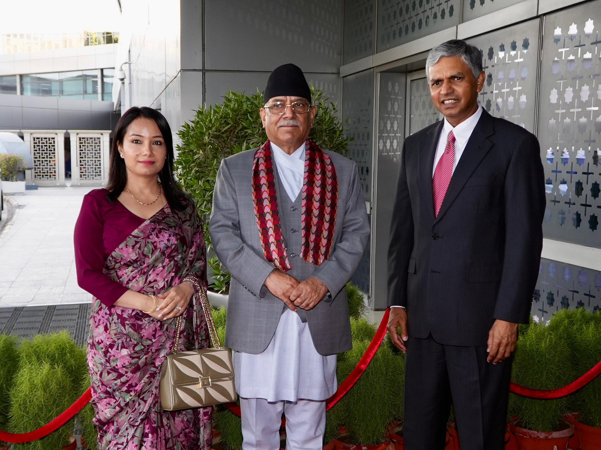 प्रधानमन्त्री दाहाललाई इन्दिरा गान्धी अन्तर्राष्ट्रिय विमानस्थलमा भारतको विदेश मन्त्रालयका विशेष सचिव पी कुमारनले औपचारिक स्वागत गरे ।