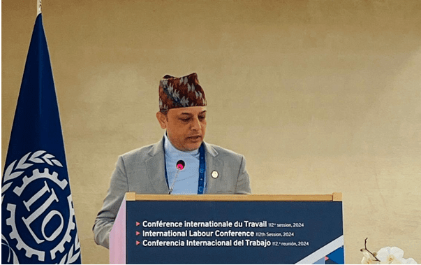 जेनेभामा आयोजित ११२औँ अन्तर्राष्ट्रिय श्रम सम्मेलनलाई सम्बोधन गर्दै उनले श्रमिकलाई मर्यादित कार्यमा लगाउने कार्यसूची कार्यान्वयन गर्न नेपाल सरकार प्रतिबद्ध रहेको बताए ।