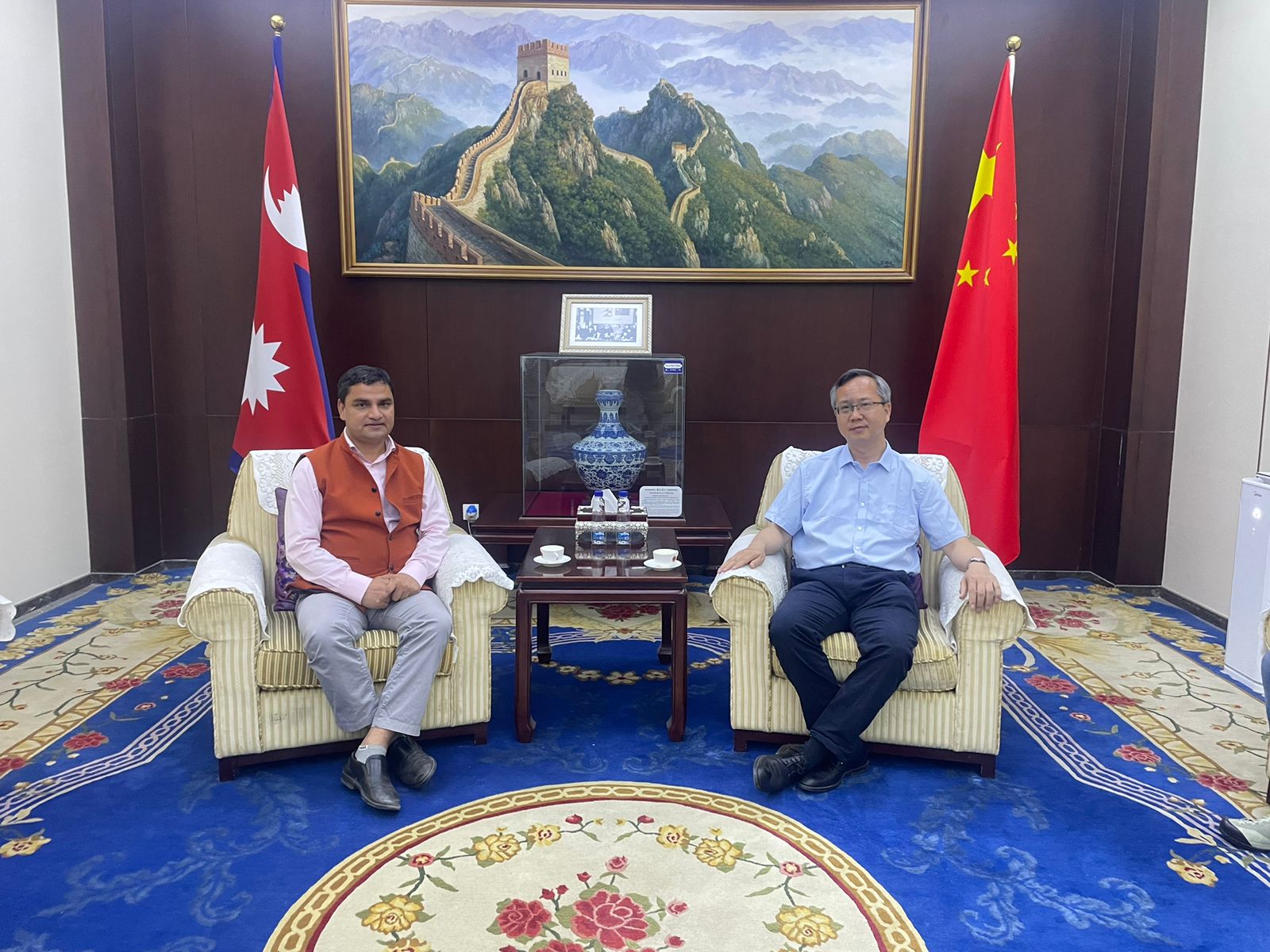 काठमाडौं । नेपाली कांग्रेसका सांसद प्रदीप पौडेल र चिनियाँ राजदूत छन सोङबीच भेटवार्ता भएको छ । बिहीबार चिनियाँ दूतावासमा यी दुईबीच भेट भएको हो ।