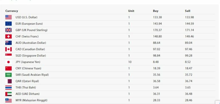 राष्ट्र बैंकका अनुसार बिहीबारको तुलनामा डलरको भाउ आज स्थिर छ । आज अमेरिकी डलर एकको खरिद दर १३३ रुपैयाँ ३८ पैसा रहेको छ भने बिक्री दर १३३ रुपैयाँ ९८ पैसामा झरेको छ । बुधबार डलर एकको खरिद दर १३३ रुपैयाँ ४१ पैसा रहेको छ भने बिक्री दर १३४ रुपैयाँ ०१ पैसामा कारोबार भएको थियो ।