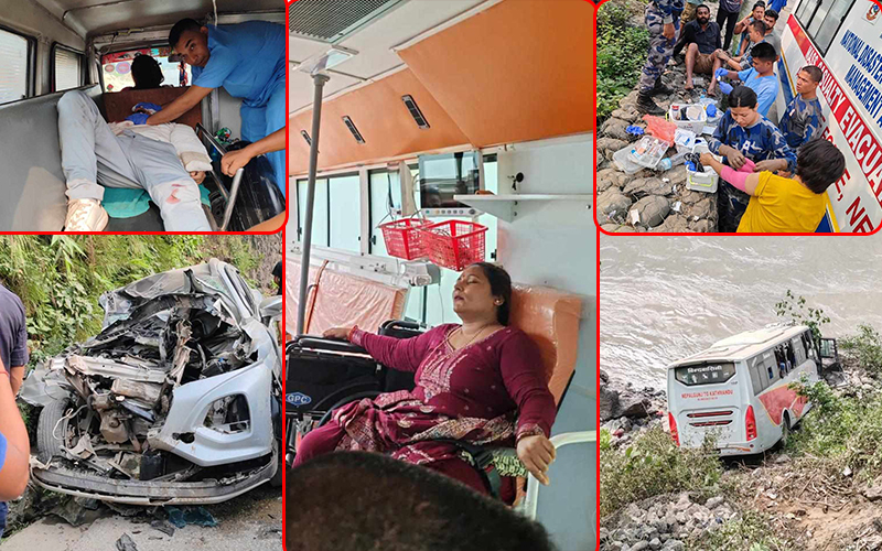 नेपालगन्जबाट काठमाडौंतर्फ जाँदै गरेको भे १ ख ४०६० नम्बरको रात्रिबस विपरीत दिशाबाट आइरहेको बागमती प्रदेश ०२–०३९च ३७२० नम्बरको कारसँग ठोक्किएको हो । सो बस त्यसपछि त्रिशूली नदी किनारमा खसेको छ । घाइतेमध्ये पाँच जनाको अवस्था गम्भीर छ । गम्भीर घाइते पाँचै जना कारमा सवार व्यक्ति हुन् ।