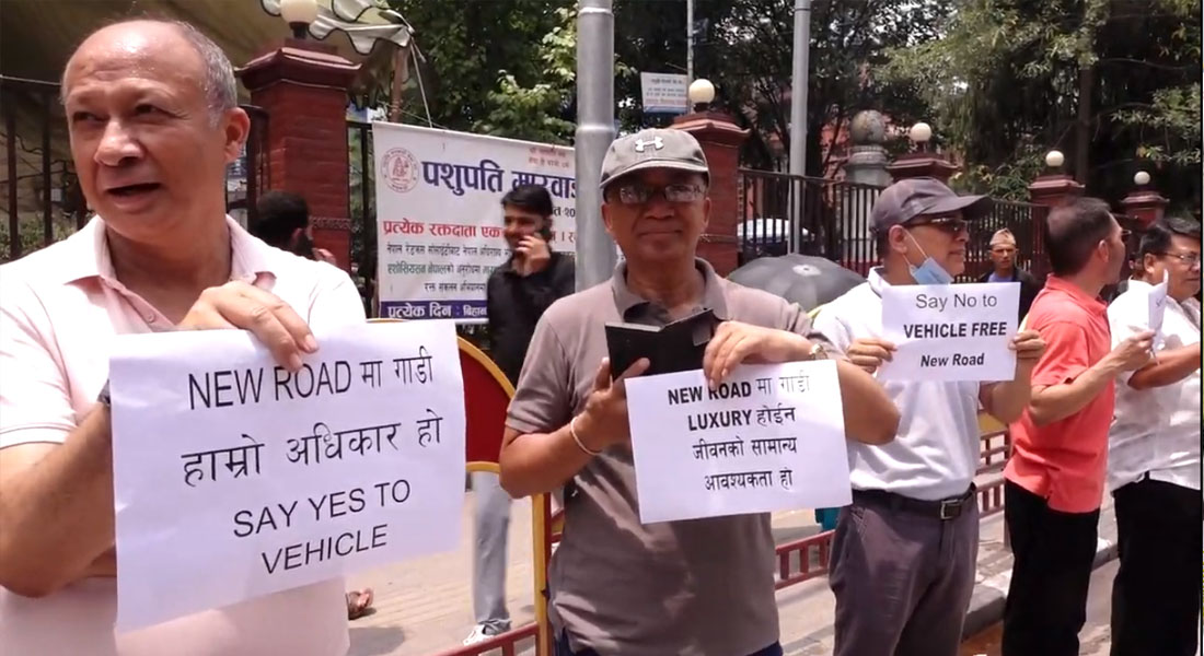 बुधवार न्यूरोडका स्थानीयले सो क्षेत्रमा प्लेकार्डसहित प्रदर्शन गर्दै सवारी निषेध क्षेत्र बनाउन नहुने भन्दै विरोध प्रदर्शन गरेका हुन् । महानगरले आगामी आर्थिक वर्षको नीति तथा कार्यक्रममा नेपालकै ऐतिहासिक महत्व बोकेको न्यूरोड क्षेत्रलाई ‘नो भेहिकल जोन’ बनाउने प्रस्ताव राखेको थियो ।