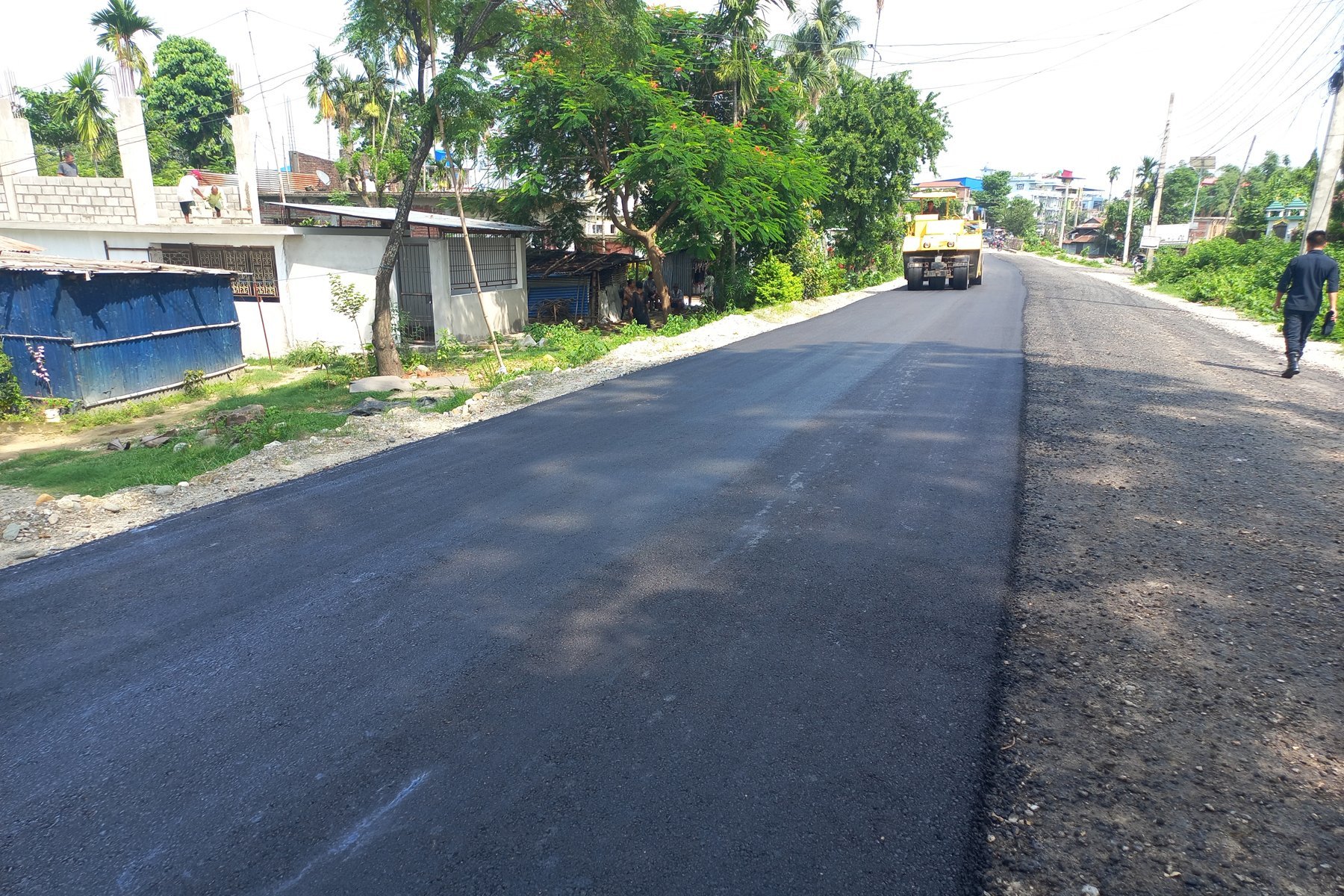 ‘बहुवर्षे योजनाअनुसार सडक निर्माण भइरहेको छ’, उनले भने, ‘मौसमले साथ दियो भने तीन–चार दिनभित्र काम सकिन्छ ।’ बिर्तामोडको टाटा शोरुमदेखि महानन्द चोकसम्मको करिब पाँच सय मिटर सडकको चौडाइ १५ मिटर हुनेछ भने बाँकी सात मिटर हुनेछ । कालोपत्रको मोटाइ ४० सेन्टिमिटर रहने उनले बताए ।