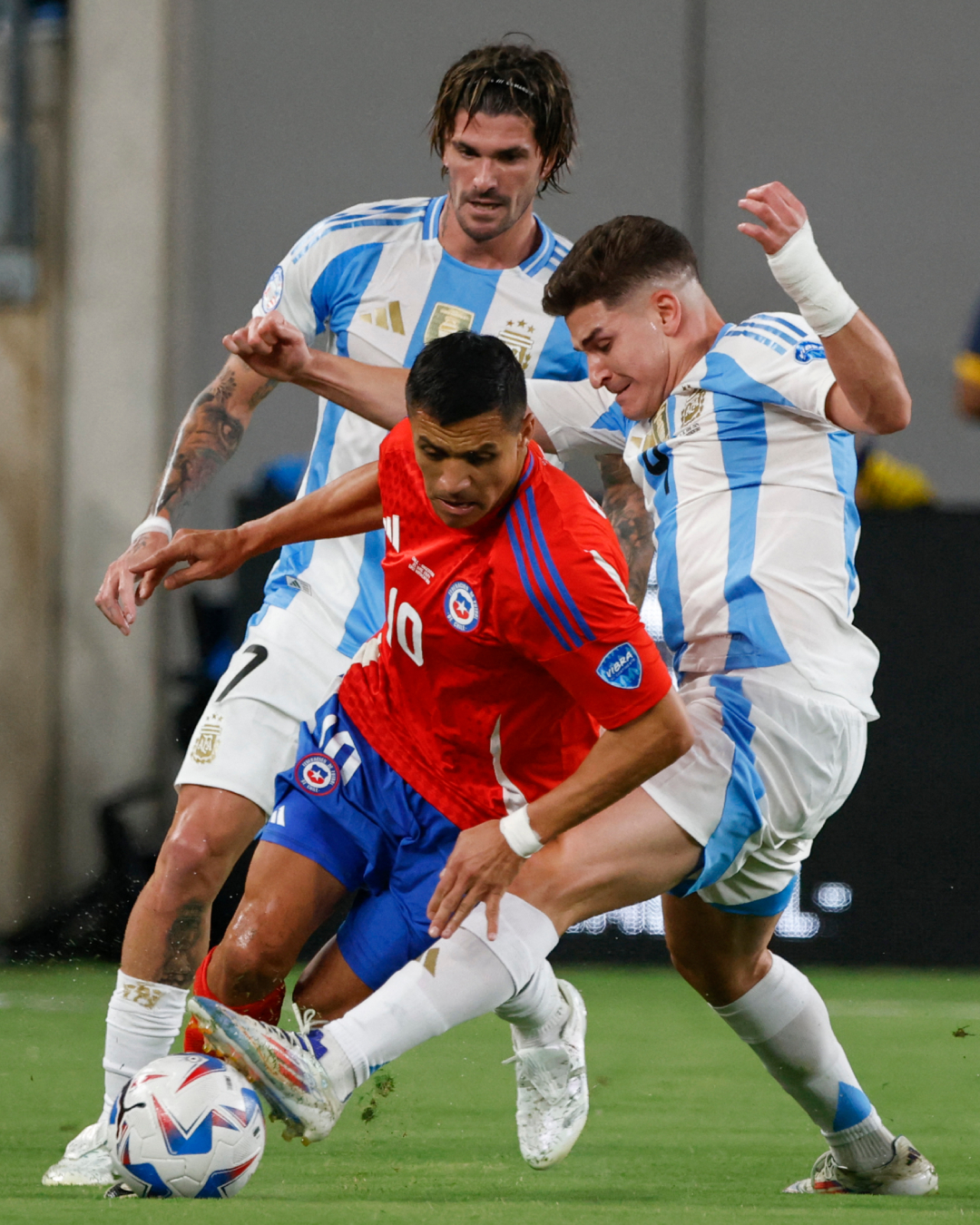 अमेरिकाको न्युजर्सीमा आज भएको खेलमा अर्जेन्टिनाले चिलीमाथि १–० को कठिन जित निकाल्न सफल भयो । ६० प्रतिशत बल आफ्नो नियन्त्रणमा राखेको अर्जेन्टिनाले गोलका लागि भने निकै संघर्ष गर्नु परेको थियो । अर्जेन्टिनाका लागि ८८औँ मिनेटमा लाउटारो मार्टिनेजले सेन्टरबाट आएको पासलाई गोलमा परिणत गर्दै अग्रता दिलाएका थिए । सोही अग्रता अन्तिमसम्म जोगाउँदै तालिकामा ३ अंक थप्न सफल भयो ।