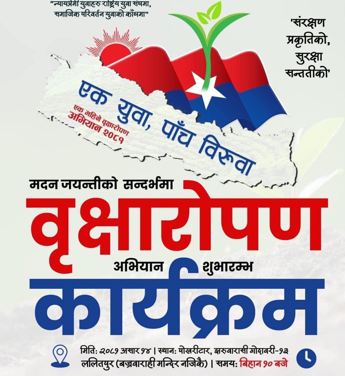 राष्ट्रिय युवा सङ्घ नेपालले एक महिने वृक्षारोपण कार्यक्रम सञ्चालन गर्ने