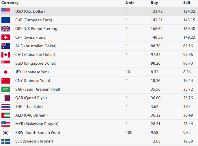 राष्ट्र बैंकका अनुसार आज अमेरिकी डलर एकको खरिद दर १३३ रुपैयाँ ४२ पैसा रहेको छ भने बिक्री दर १३४ रुपैयाँ ०२ पैसा पुगेको छ । बुधबार डलको खरिद दर १३३ रुपैयाँ २० पैसा र बिक्री दर १३३ रुपैयाँ ८० पैसा रहेको थियो ।