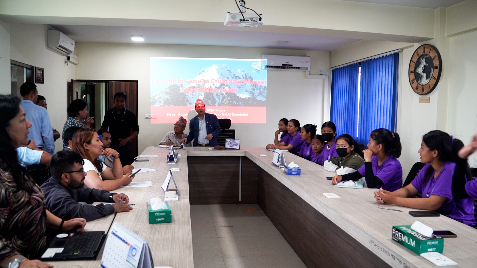 शुक्रबार नागपोखरी नक्साल स्थित नेपाल पर्वतारोहन सङ्घको सचिवालयमा विदाई कार्यक्रम आयोजना गरी गञ्जला चुली हिमाल आरोहण गर्न जाने २७ जना महिलाहरूको टोलीलाई बिदाइ गरिएको हो ।