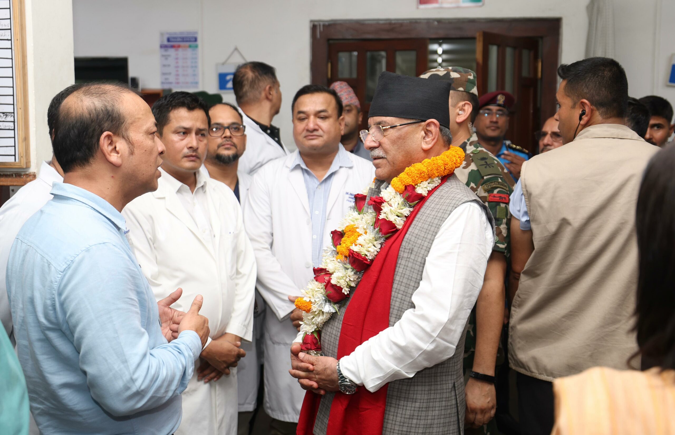 सो अवसरमा प्रधानमन्त्रीले मेडिकल कलेजमा उपचाररत पूर्वमन्त्री घनश्याम दाहाल एवं सर्व साधारणको स्वास्थ्यअवस्थाबारे जानकारी लिएका हुन् ।