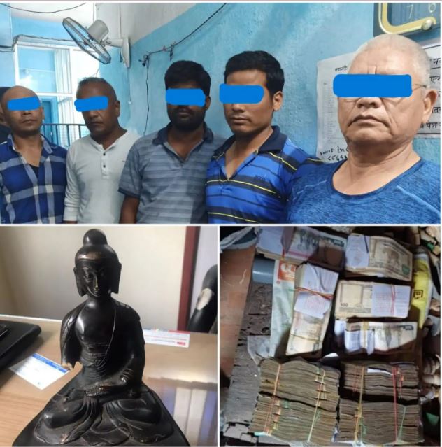 प्रहरीले पक्राउ परेकाहरुको साथबाट नक्कली सुनको बुद्धको मूर्ति एक थान र १४ लाख रुपैयाँ बरामद गरेको हो ।