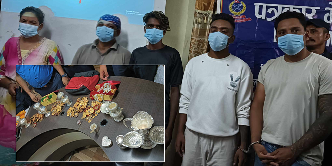 जिल्ला प्रहरी कार्यालय चितवनका अनुसार, पक्राउ पर्नेमा विनोद सुनचाँदी पसलका सञ्चालक कालिका नगरपालिका–६ का ३५ वर्षीय विनोद सुनार, चोरी गर्न सहयोग गर्ने पसलका व्यवस्थापक कालिका नगरपालिका–७ का २५ वर्षीय विजय विश्वकर्मा, चोरी गर्ने म्याग्दी गाउँपालिका–७ का ५० वर्षीय पूर्णबहादुर विश्वकर्मा र बारागढी नगरपालिका–४ का १८ वर्षीय पवनकुमार पासवान एवं चोरी भएको सामान लुकाउन सहयोग गर्ने कालिका–६ का ४२ वर्षीय अञ्जना पुडासैनी केसी रहेका छन् ।