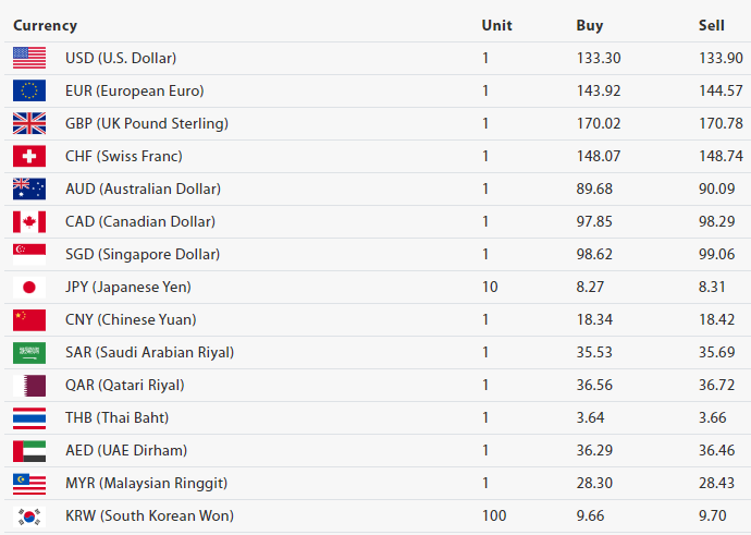 अमेरिकी डलर एकको खरिद दर १३३ रुपैयाँ ३० पैसा र बिक्री दर १३३ रुपैयाँ ९० पैसा पुगेको छ ।