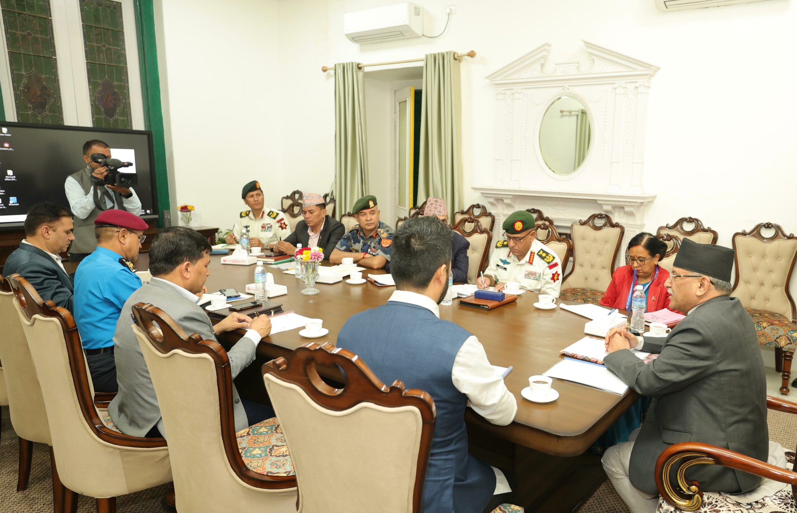 छलफलमा नेपाली सेना र गृह मन्त्रालयका तर्फबाट विपद् व्यवस्थापनको पूर्वतयारी र जोखिम पूर्वकार्य सम्बन्धी आफ्नो तर्फबाट गरिएको तयारीबारे प्रधानमन्त्रीलाई ब्रिफिङ गरिएको थियो । बैठकमा उपप्रधान तथा गृहमन्त्री रवि लामिछाने, प्रधानसेनापति प्रभुराम शर्मा, निमित्त मुख्यसचिव लिलादेवी गड्तौला, गृहसचिव एकनारायण अर्याल, रक्षासचिव किरणराज शर्मा, प्रहरी महानिरीक्षक वसन्त कुंवर, सशस्त्र प्रहरी बलका महानिरीक्षक राजु अर्याल लगायतका अधिकारीहरूको सहभागिता थियो ।