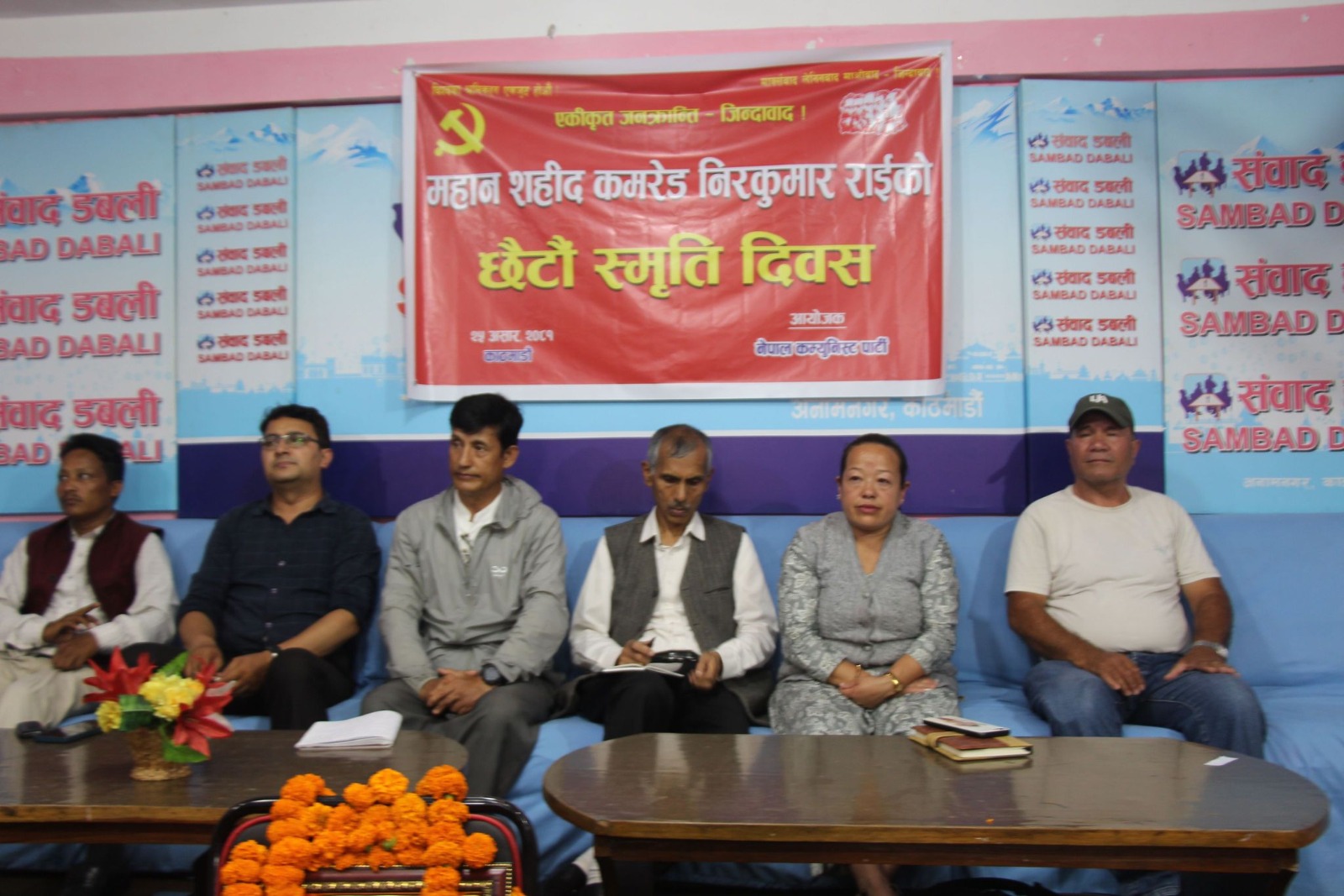 मंगलबार काठमाडौंमा ‘सहिद निरकुमार राईको छैटौं स्मृति दिवस’ कार्यक्रममा नेकपाका पोलिटब्यूरो सदस्य माइला लामाले निरकुमार राईजस्तै हजारौंको बलिदानबाट आएको परिवर्तनलाई संस्थागत गर्नुको सट्टा त्यसलाई उल्ट्याउने चलखेल सुरु भएको आरोप लगाएका छन् ।