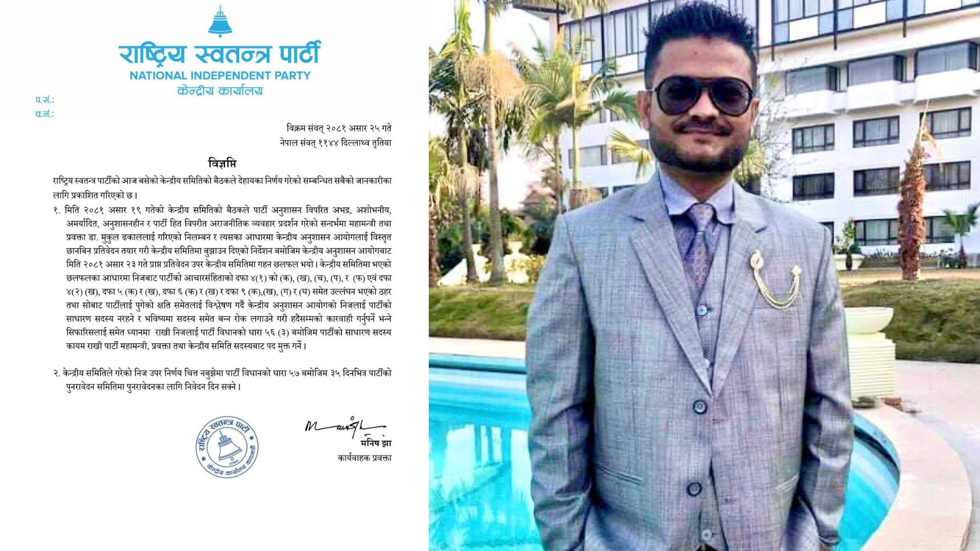 काठमाडौं । राष्ट्रिय स्वतन्त्र पार्टीका सम्पूर्ण जिम्मेवारीबाट हटाइएका मुकुल ढकालले ३५ दिनभित्र कारबाहीविरुद्ध पुनरावेदन दिन पाउने भएका छन् । रास्वपा केन्द्रीय समिति बैठकले उनलाई पुनरावेदन गर्न सक्ने भन्दै ३५ दिनको समय दिएको छ ।