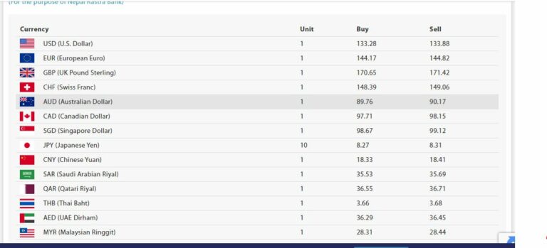 युरो एकको खरिद दर १४४ रुपैयाँ १७ पैसा र बिक्री दर १४४ रुपैयाँ ८२ पैसा रहेको छ ।बेलायती पाउण्ड एकको खरिद दर १७० रुपैयाँ ६५ पैसा र बिक्री दर १७१ रुपैयाँ ४२ पैसा पुगेको छ ।